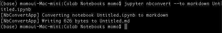 Colab Notebook을 HTML과 Markdown으로 저장하는 방법¶Colab Notebook에서 작업한 내용을 HTML과 Markdown 형식으로 저장하는 방법Colab Notebook을 다양한 형식으로 저장하면 다른 플랫폼에서 공유하거나, 문서로 보관할 때 유용함티스토리나 미디엄 같은 블로그에 바로 포스팅할 수 있고, 컨플루언스 업로드도 가능해 업무적으로 보고, 협업 시 활용할 수 있음 1. Colab Notebook을 HTML로 저장하기¶Colab Notebook을 HTML 형식으로 저장하려면 nbconvert를 사용하면 된다.(nbconvert : Jupyter Notebook을 다양한 형식으로 변환해주는 라이브러리)현재 노트북을 .ipynb 파일로 저장하기:Colab에서 "파일" > "저..
