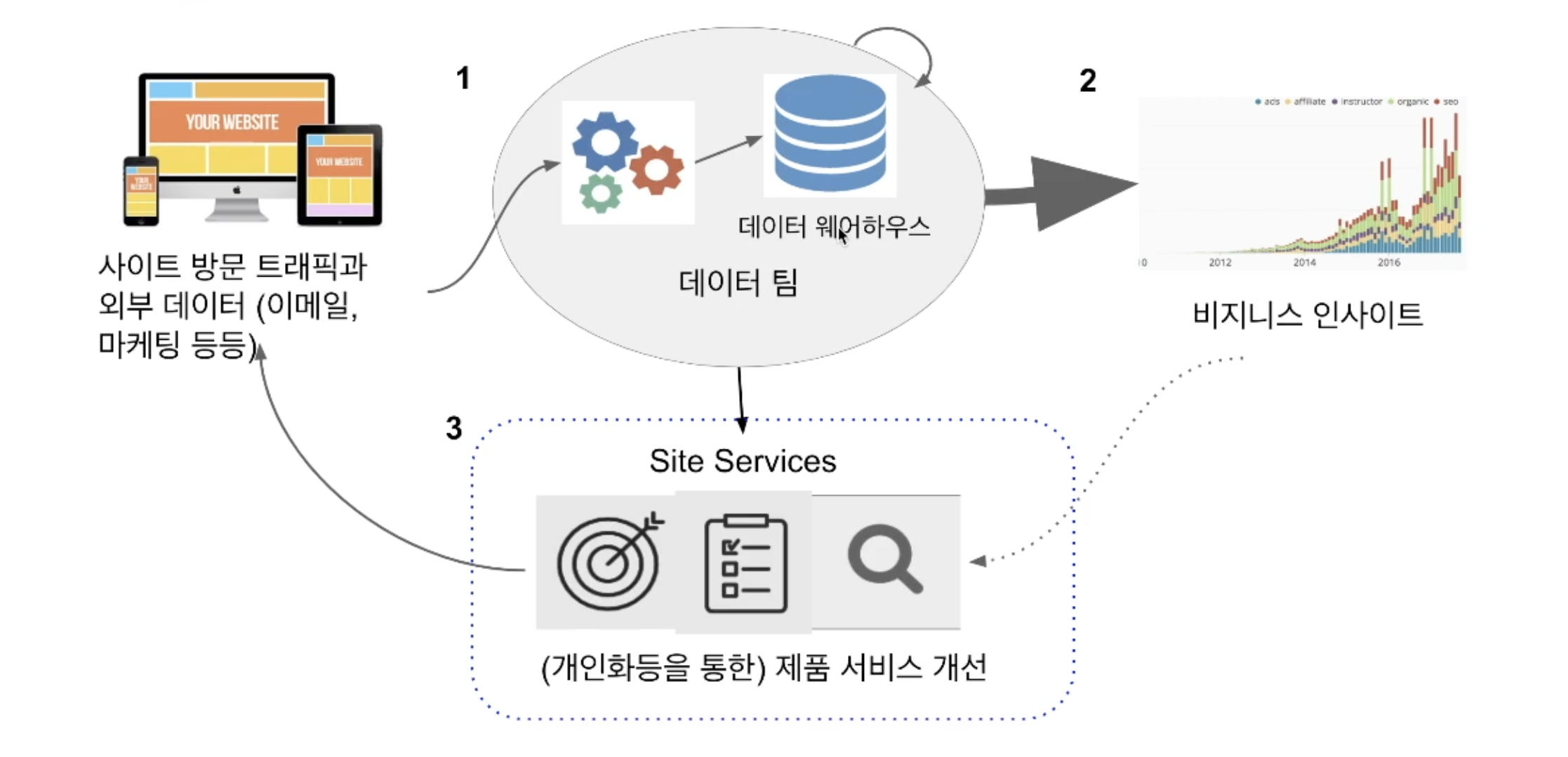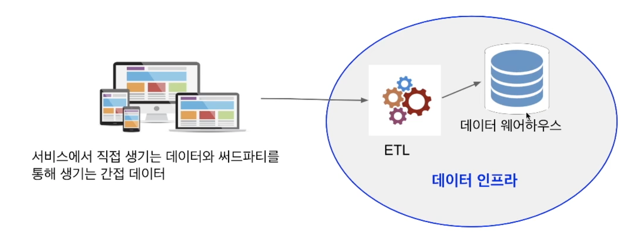 -> 회사의 서비스와 상관없는 데이터 웨어하우스가 있어야 한다 (작은 스타트업에서는 없는 경우가 많다.)