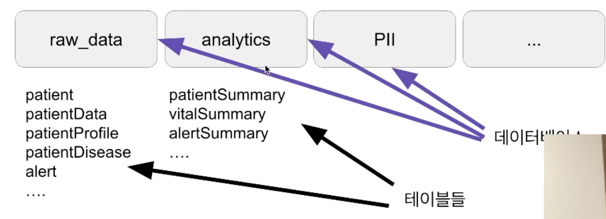 CREATE SCHEMA analytics; (데이터 분석가들이 관리)