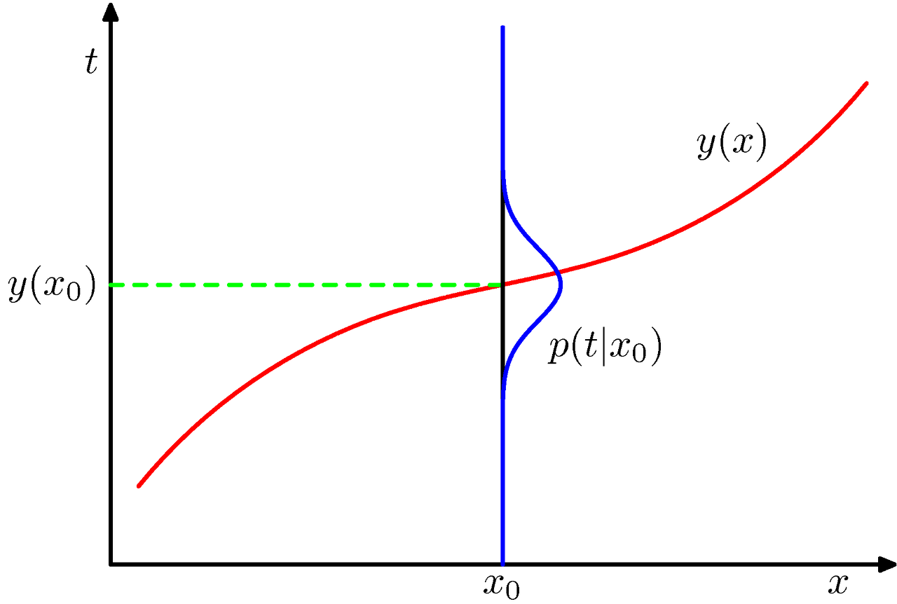 결합분포 p(x,t)를 구하는 추론 문제를 먼저 푼 다음 조건부확률분포를 구함